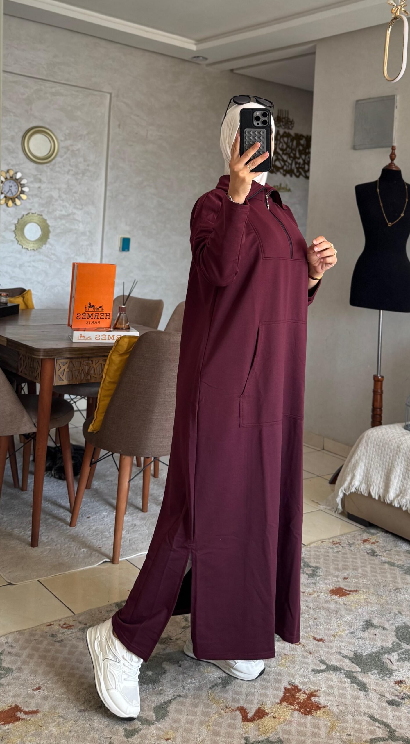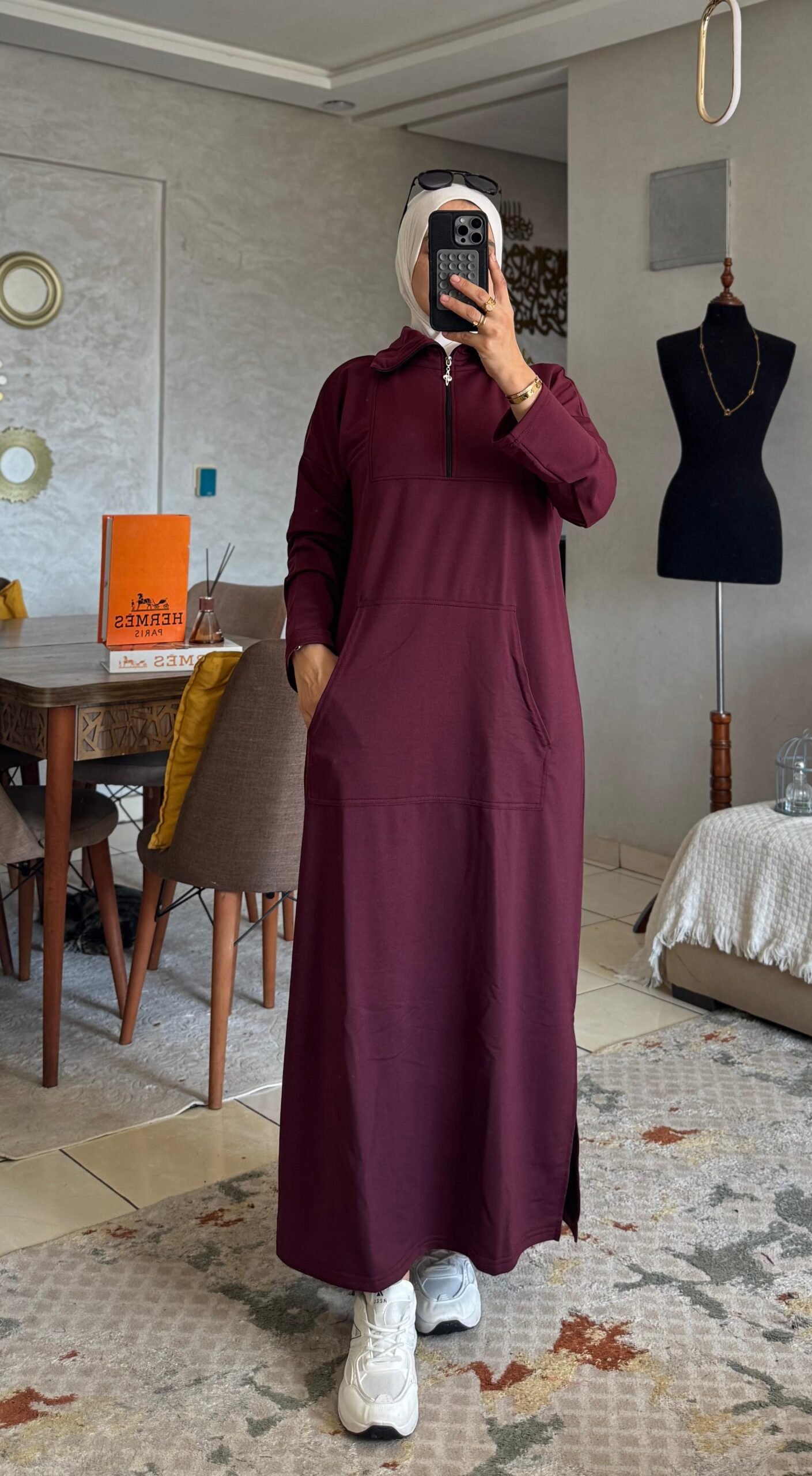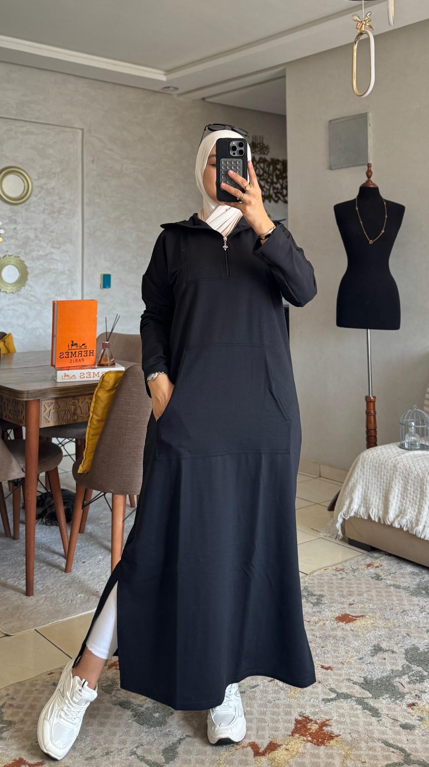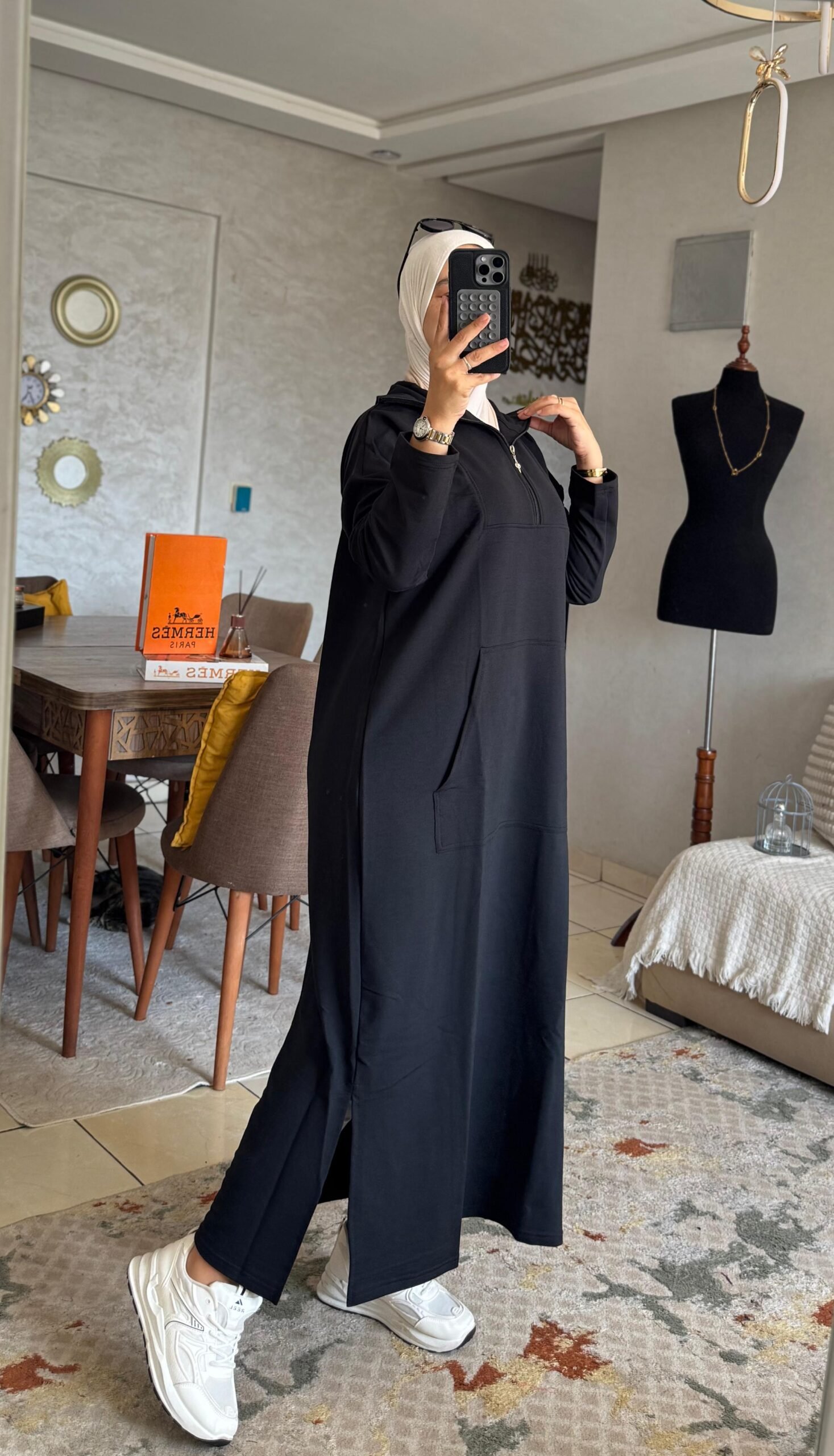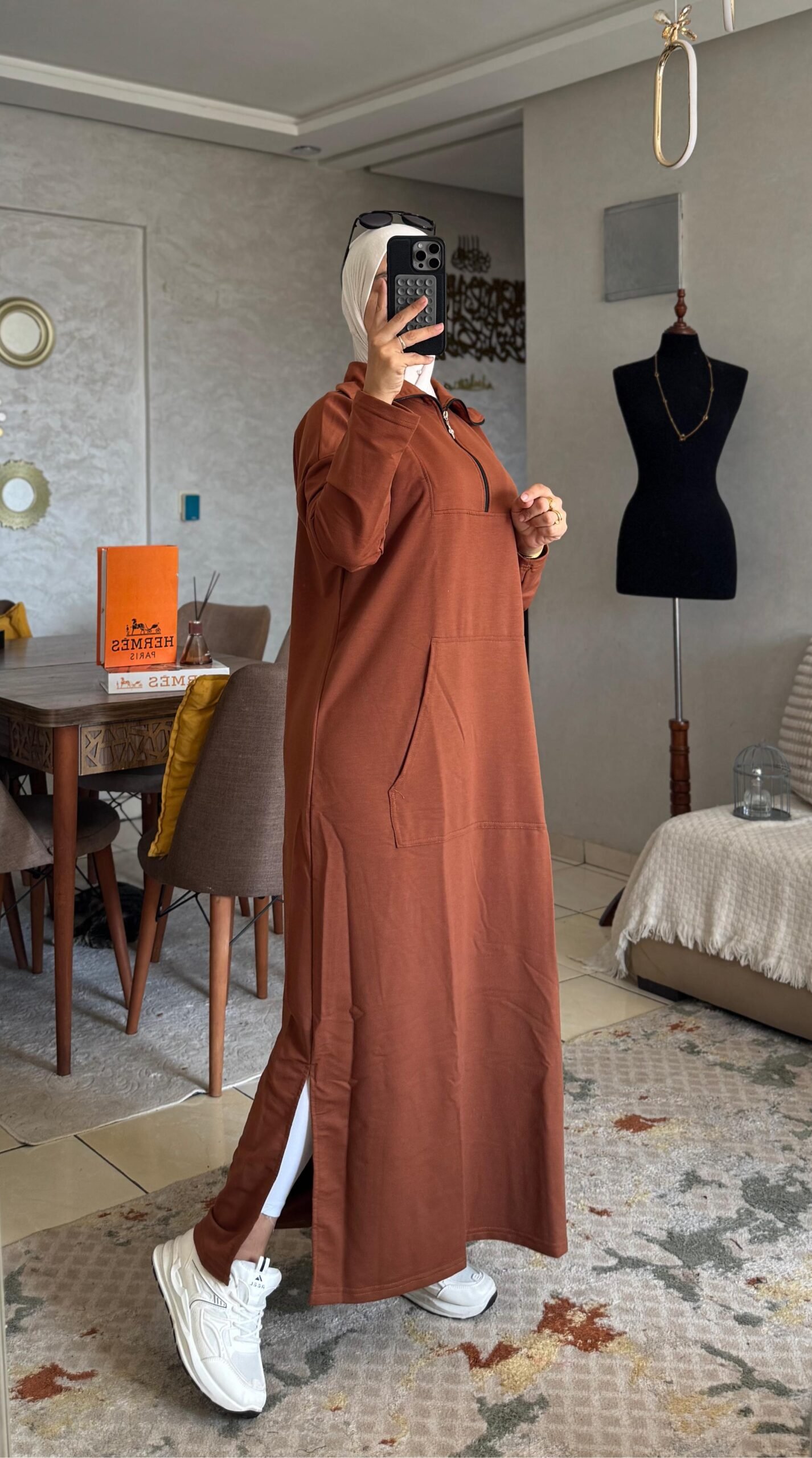 لكن التفاصيل ديال السنسلة و الجياب كتزيدها طابع عصري مثير… واحد الستايل اللي ماشي أي وحدة تقدر تلبسو بلا ما تثير الانتباه 👀.